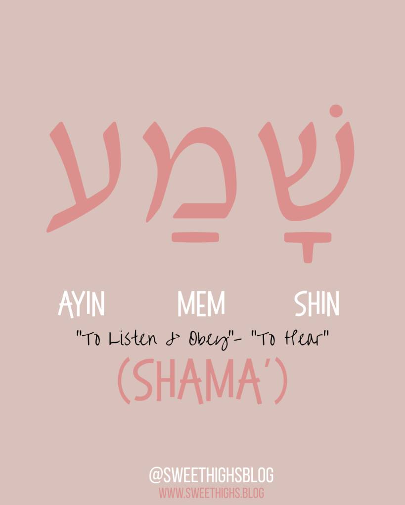 When I shāmaʿ, I’m not laboring under fear. I’m living under grace. Obedience flows from love and leads back to love.