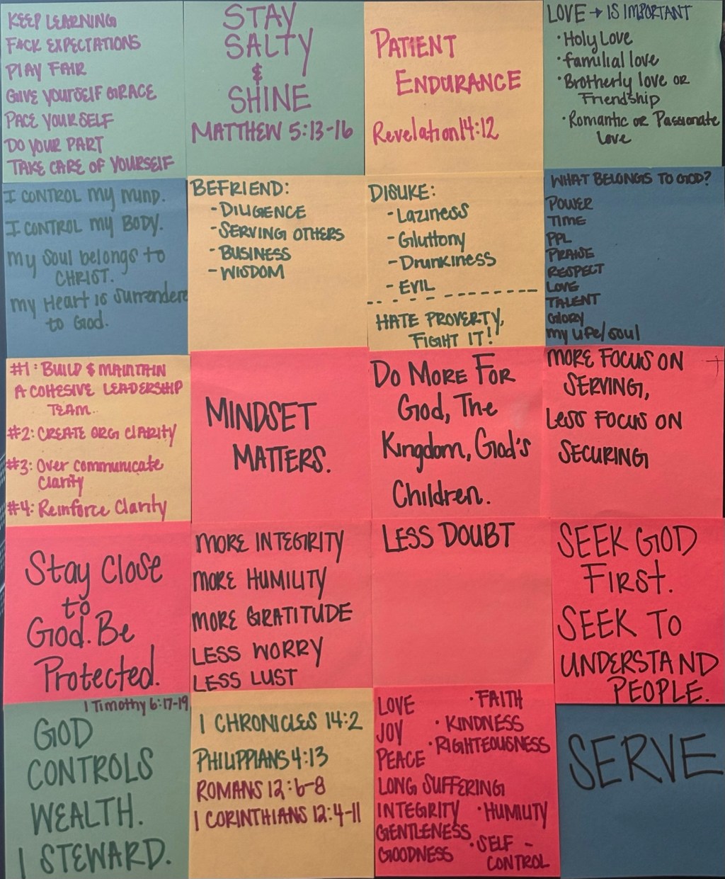 Since then, I have carried that practice into every workplace I have been in. My desk is always lined with sticky notes filled with scriptures and encouragements from the Holy Spirit, daily reminders of God’s nearness.
